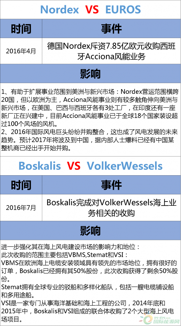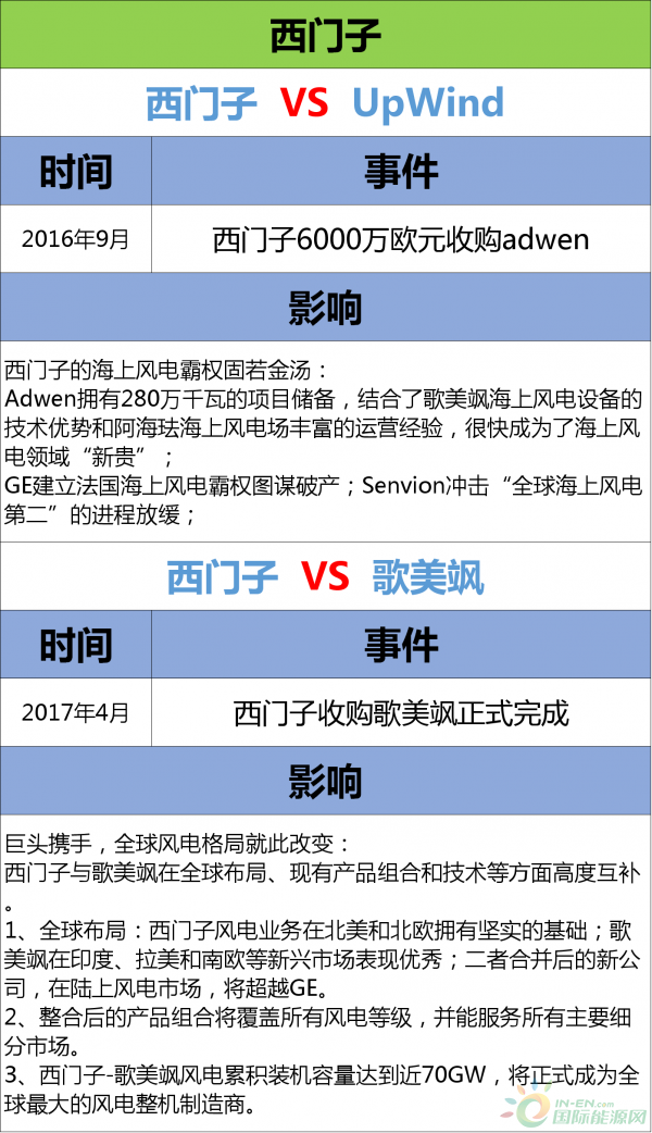 过去的两年里,国际风电市场并购事件接连涌现——从GE收购BladeDynamics,到Nordex收购Acciona风电业务,再到Vestas收购Upwind(北美运维公司)和Availon(德国运维公司),直到Siemens收购Gamesa,甚至运维行业也出现了GlobalMarine收购CWind的情况。