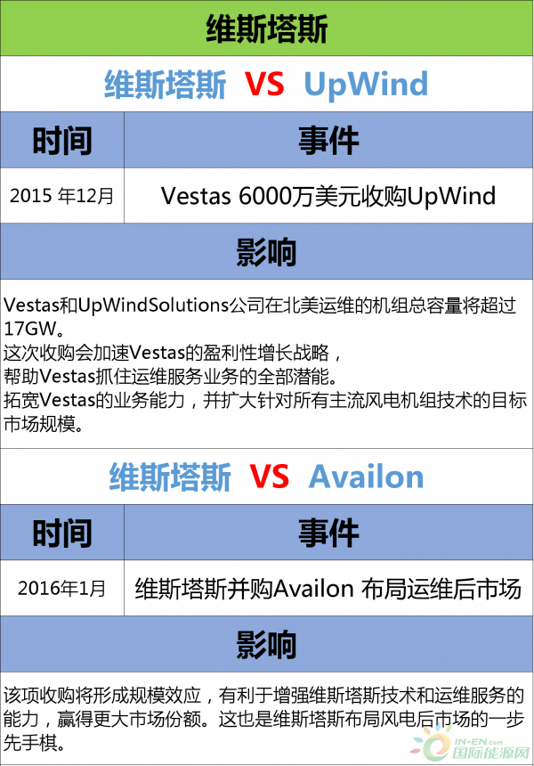 截止2016年,维斯塔斯在全球的风电市场占据最大的份额,其风机和风电服务一直受到全球市场的认可,近两年其先后并购两家风电运维企业,扩大其业务的同时也是在为其风电后市场进行布局。这样有助于扩大其全球市场份额,稳固其全球风电霸主地位!