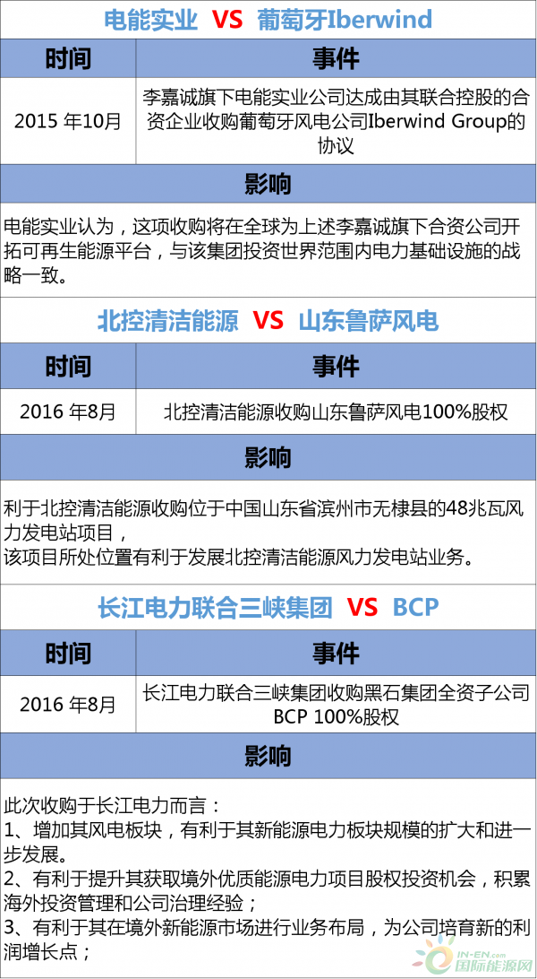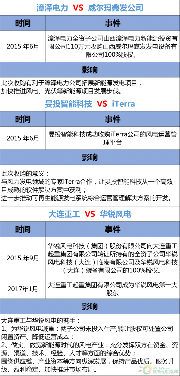 相对于国际重大的风电并购案而言,中国国内的风电并购规模和影响了都比较小,而且并购类型更多,跨度更大。不仅有产业内部调整产业链的并购,也有其他行业对风电的跨界并购。这也进一步说明了风能在能源中的分量的提升。