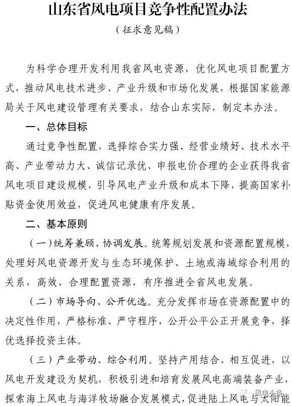山东省能源局关于公开征求风电项目竞争性配置办法意见的通告