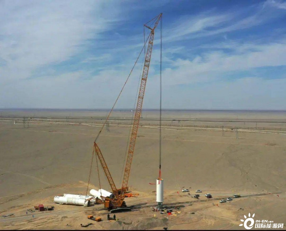 日前,随着一段长18米、直径4.5米左右、重63吨的塔筒顺利固定就位。新疆立新能源若羌县米兰50MW风电项目首台风机底段塔筒吊装顺利完成,标志着该项目正式进入风机吊装阶段。