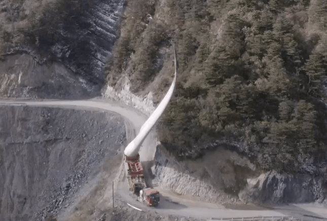 前段时间,在三峡能源四川金阳风电场,建设者们将75米长、19吨重的风机叶片运送上山的视频火了。