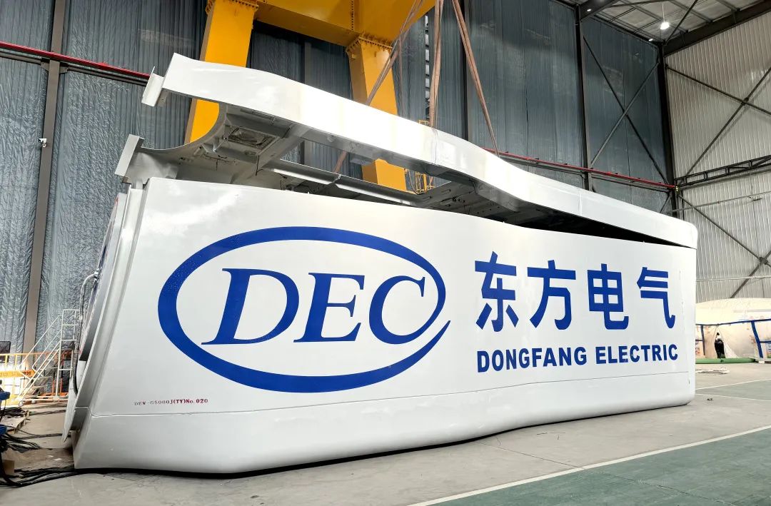 2023年12月14日,东方风电通榆基地生产现场,伴随着行车汽笛声和电动力矩扳手的轰鸣声,吉西鲁固项目第20号机组在完成整机联调、罩壳装配后,顺利下线。至此,该项目20台机组全部完成厂内制造。
