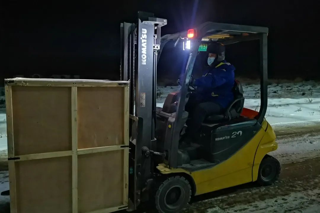 为此,东方天津风电、交付中心抽调精干力量组成异地生产团队,以实现对业主的庄严承诺、助力打造东方风电东北“桥头堡”为目标,在现场厂房尚不具备供暖条件的情况下,提前赶赴通榆,入驻厂区筹备生产。在寒潮来袭、暴雪封路、呼吸道疾病高发以及场地设备紧张、交付周期短等诸多不利因素前,东方风之子发出“不以日夜划分时光,只为交付争取时间”的号召,以决战决胜之势全力冲刺项目生产,用时25天提前完成20台/10万千瓦的产出任务,为后续机组交付风场、吊装调试争取了宝贵时间。