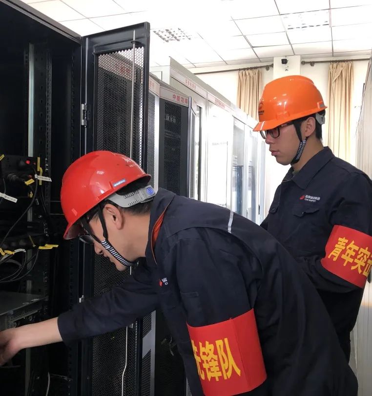 图为青年突击队成员进行检修维护工作