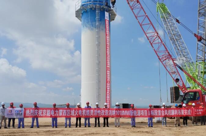 2025年7月28日,随着重达39吨的第三支叶片在125米高空与轮毂精准对接,京能电力蒙西区域火电机组灵活性改造消纳1018MW新能源项目的首台风机顺利完成了吊装。这一激动人心的时刻,不仅标志着项目建设取得了里程碑式的重要进展,更是践行“京蒙一家亲、共赢绿色发展”的理念,大力弘扬“四千精神”,竭尽全力助力乌兰察布打造千万千瓦能源基地的重要实践。