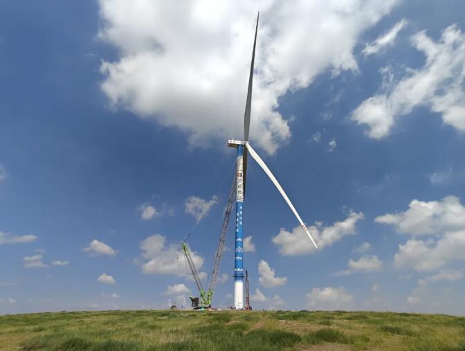 项目选用了102台10MW双馈智能风电机组。机组轮毂高度125米,叶轮直径230米,扫风面积达41547平方米。此外,机组采用了先进的箱变上置技术,有效节省了征地面积、缩短了施工安装时间,进一步优化载荷控制,减少线损,大幅提升发电效率。