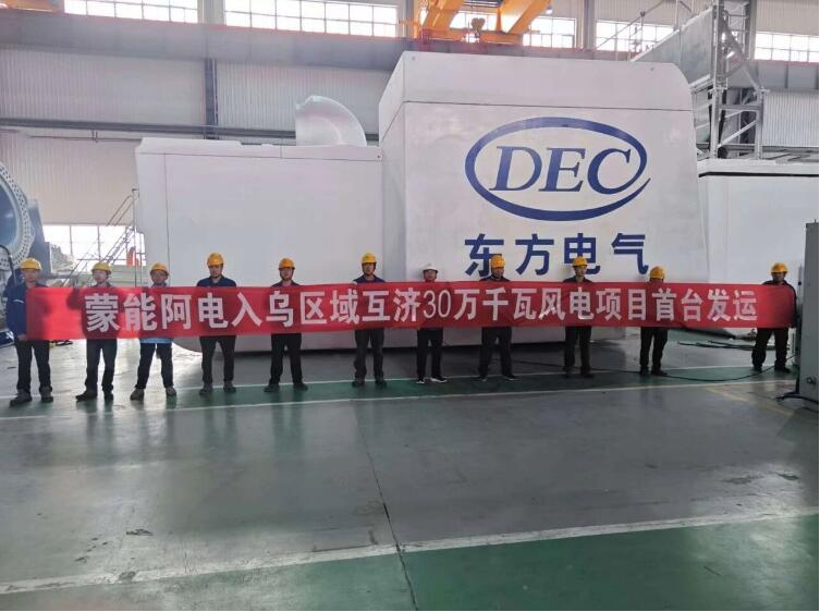 9月22日,蒙能阿电入乌项目首台机组在东方风电酒泉基地完成调试下线。