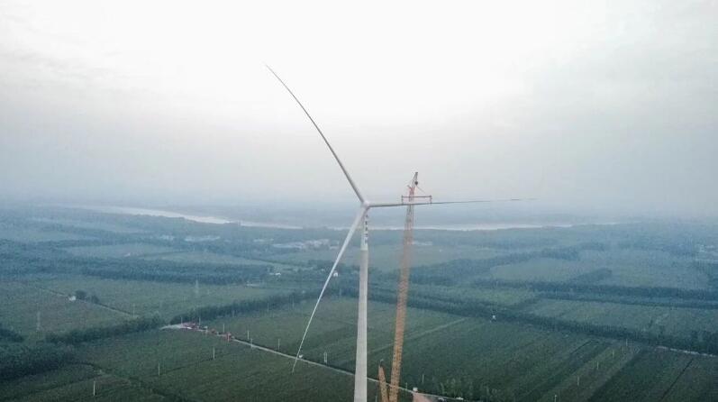 近期,山东聊城信发东阿县225兆瓦陆上风电项目一期项目首台风机吊装圆满完成。