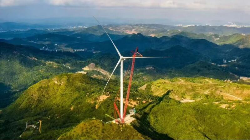 9月21日,贵州修文县矿能高仓风电项目首台风机顺利吊装成功。
