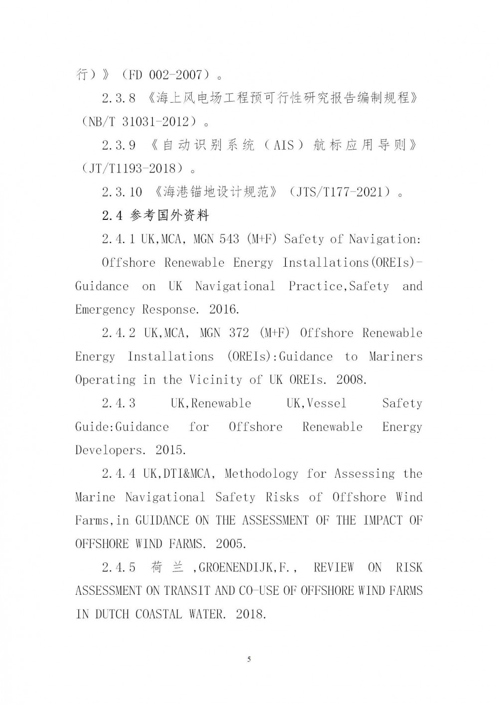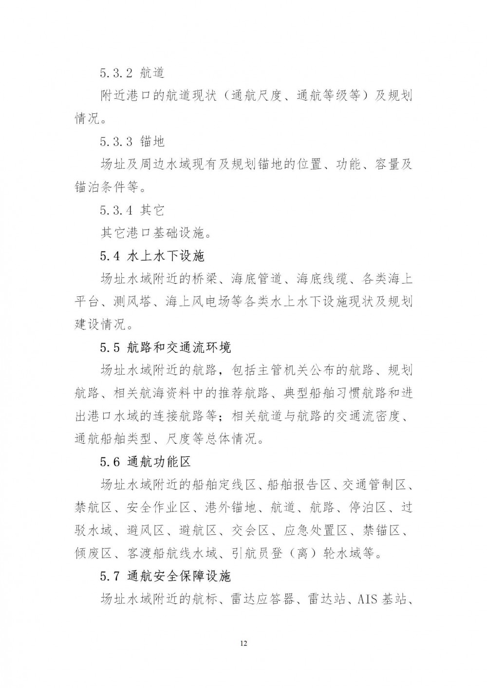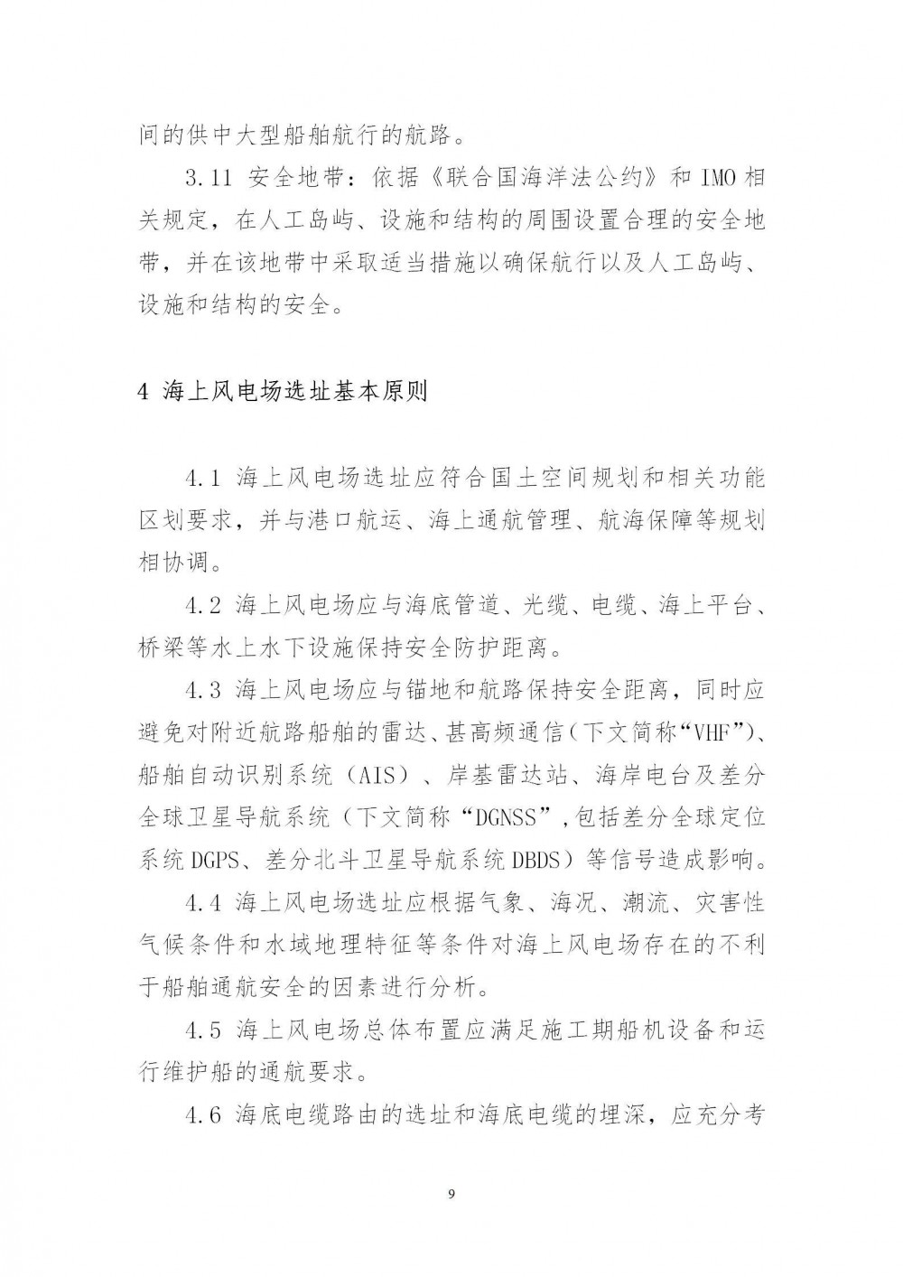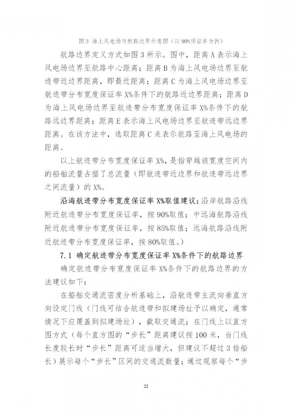 其中,《海上风电场选址通航安全分析技术指南(征求意见稿)》指出,本指南提出了海上风电场建设选址通航安全分析的内容、方法和技术要求,可为沿海海上风电场工程的规划选址提供参考和指导。本指南适用于在沿海水域(不包括港口水域)为海上风电场建设选址而开展的通航安全专题论证、通航风险分析等各类旨在解决通航安全问题的评估、分析、论证。