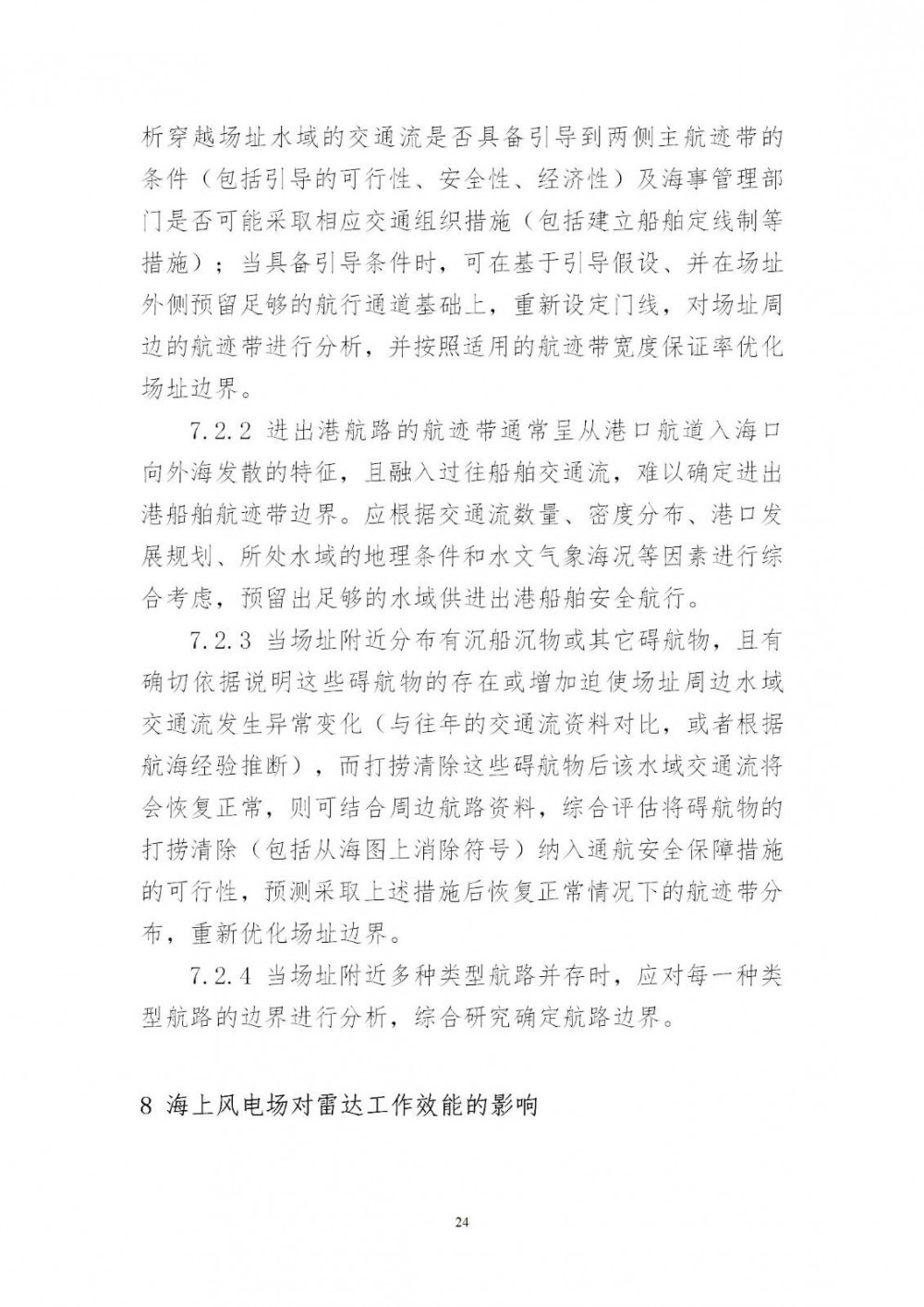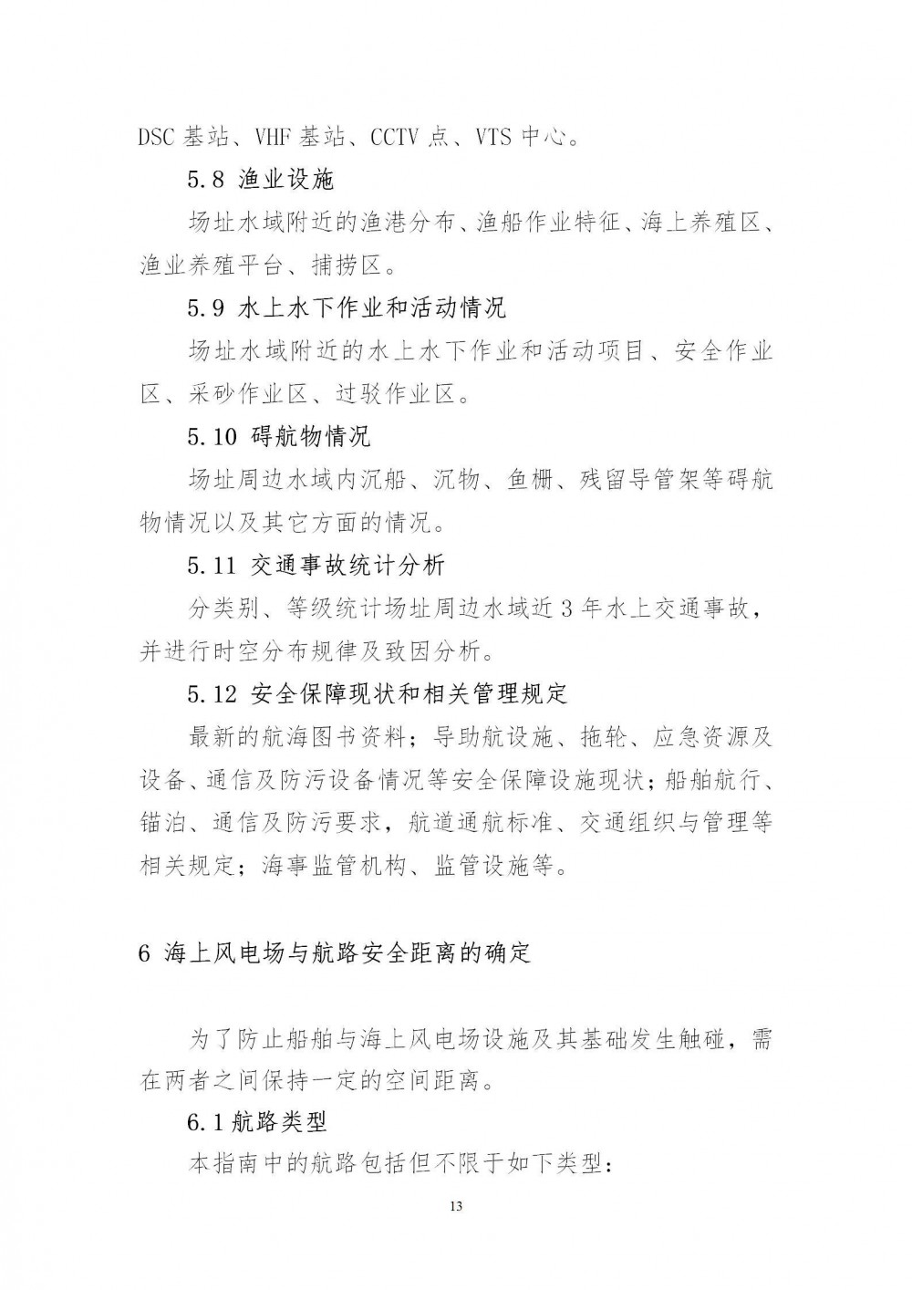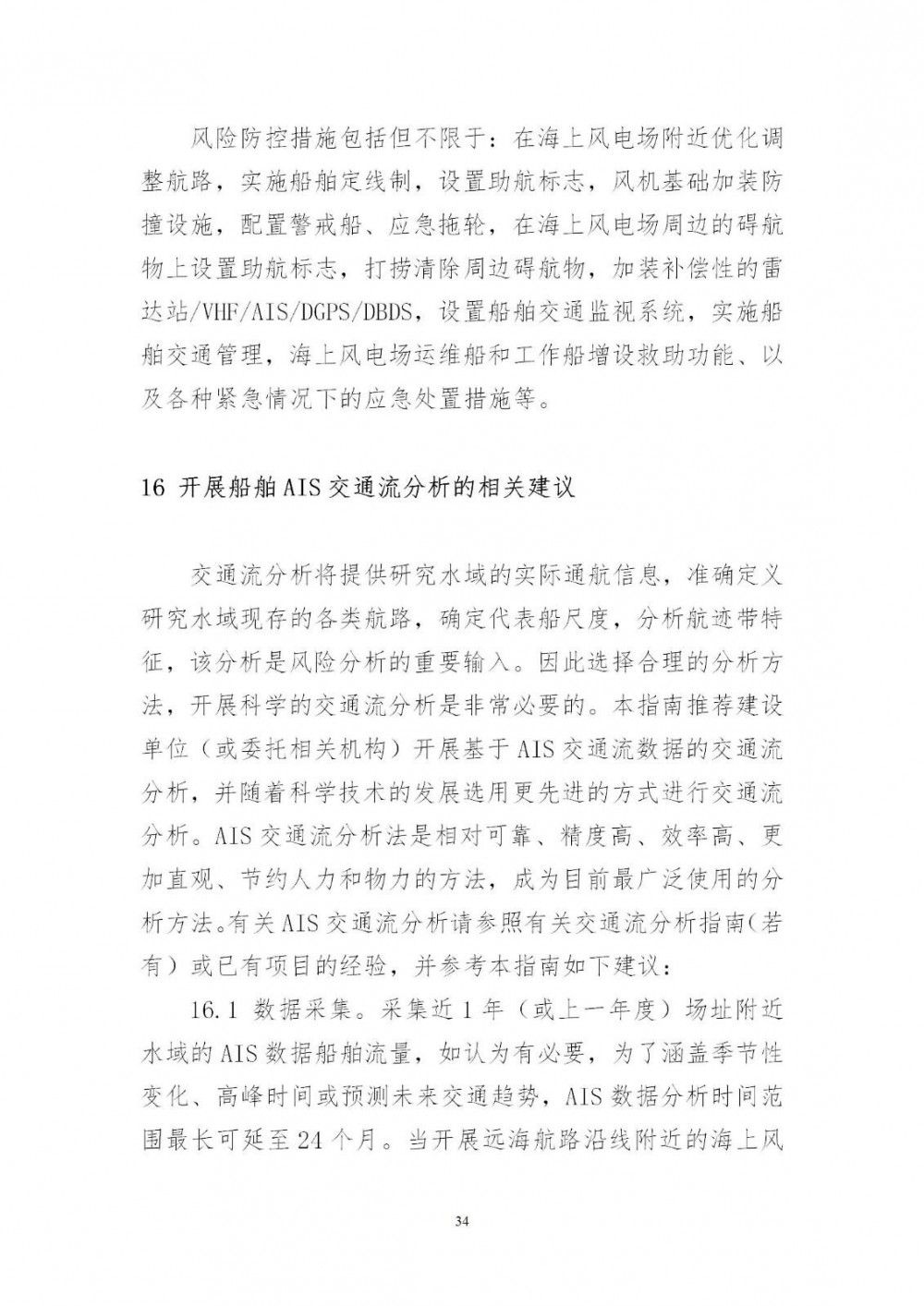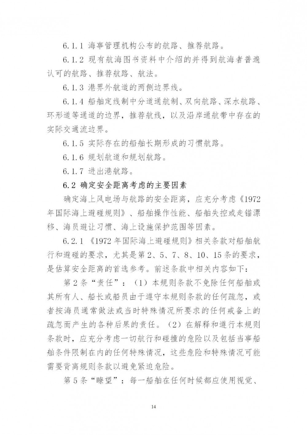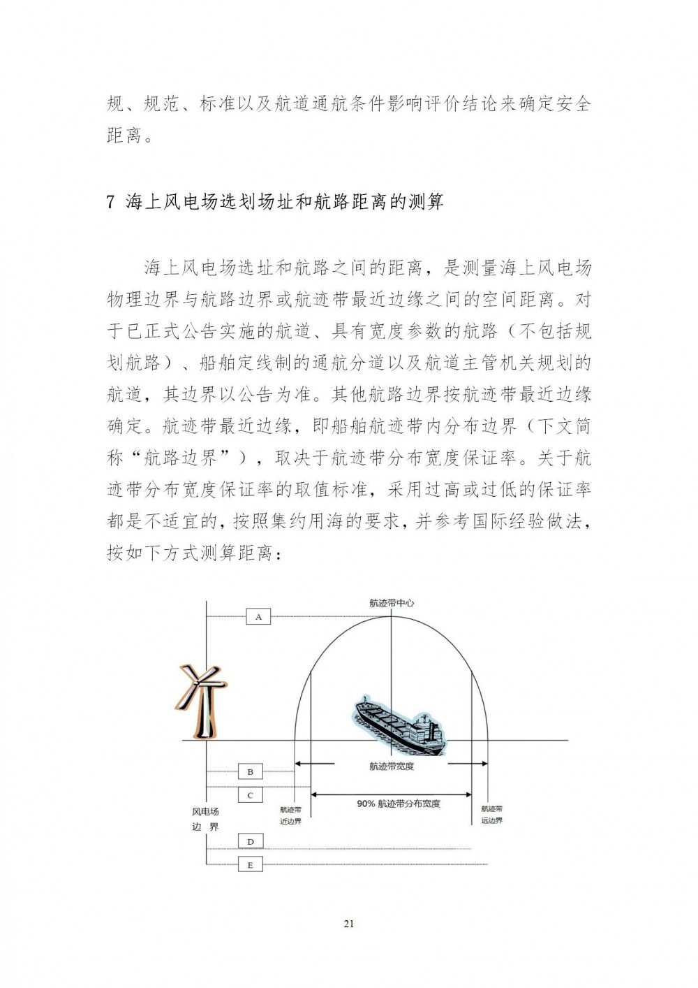 其中,《海上风电场选址通航安全分析技术指南(征求意见稿)》指出,本指南提出了海上风电场建设选址通航安全分析的内容、方法和技术要求,可为沿海海上风电场工程的规划选址提供参考和指导。本指南适用于在沿海水域(不包括港口水域)为海上风电场建设选址而开展的通航安全专题论证、通航风险分析等各类旨在解决通航安全问题的评估、分析、论证。