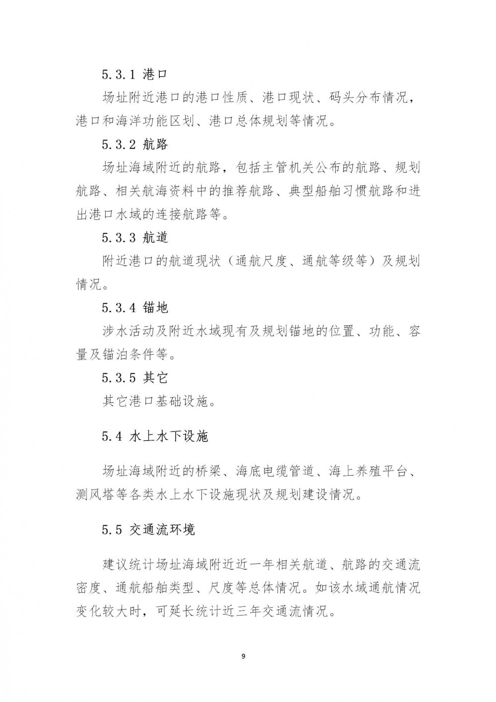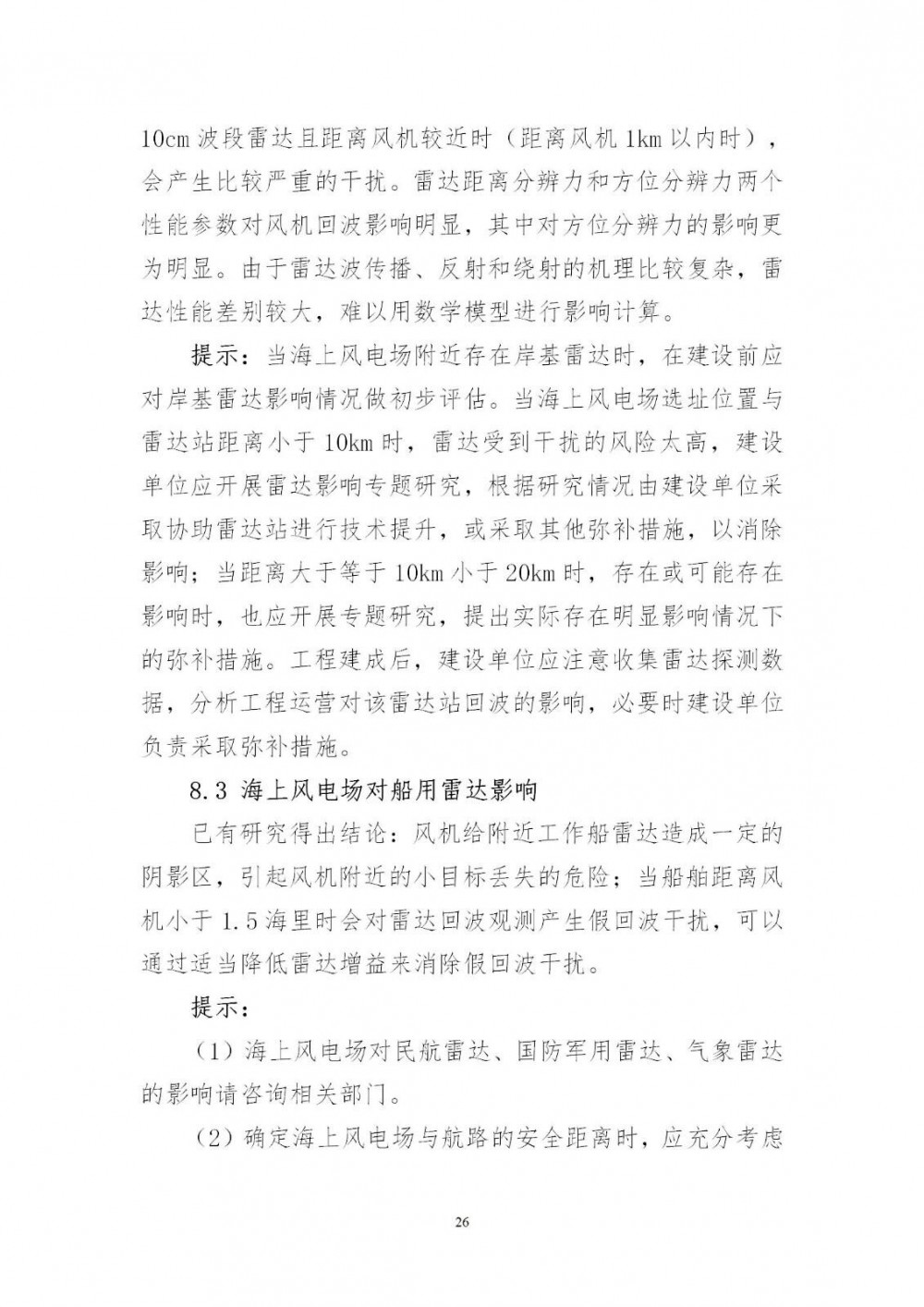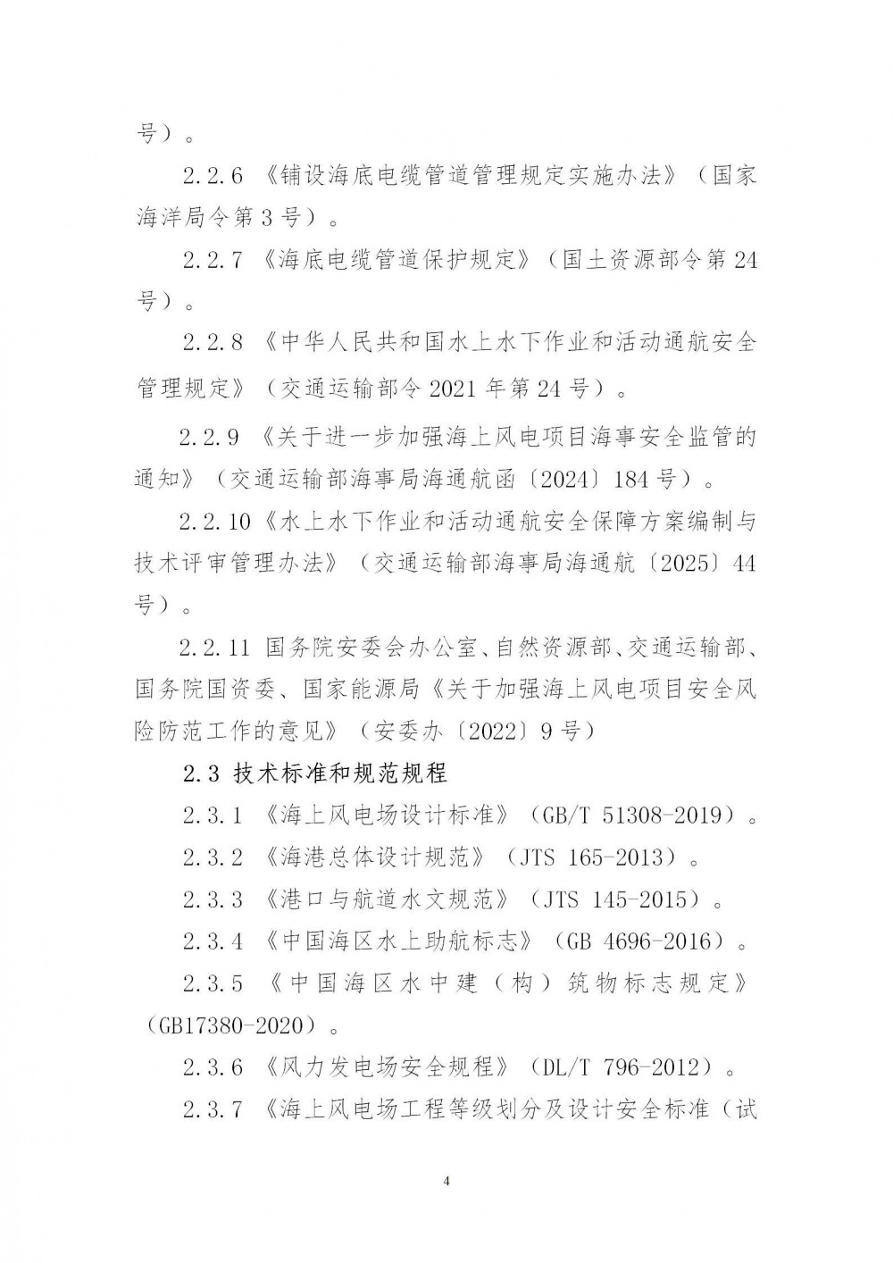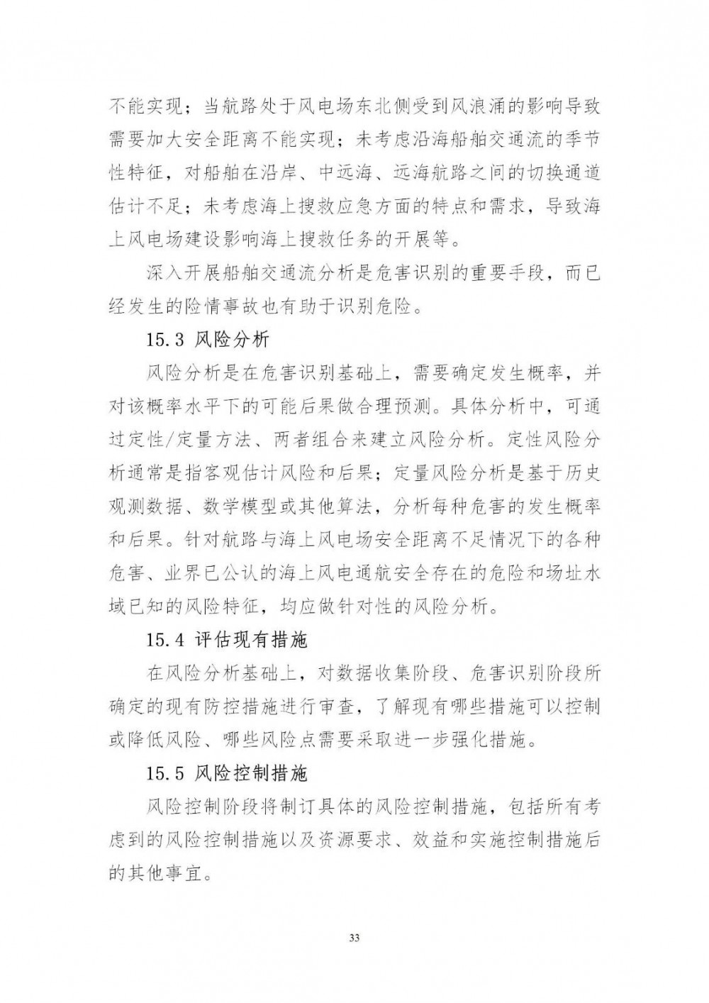 其中,《海上风电场选址通航安全分析技术指南(征求意见稿)》指出,本指南提出了海上风电场建设选址通航安全分析的内容、方法和技术要求,可为沿海海上风电场工程的规划选址提供参考和指导。本指南适用于在沿海水域(不包括港口水域)为海上风电场建设选址而开展的通航安全专题论证、通航风险分析等各类旨在解决通航安全问题的评估、分析、论证。