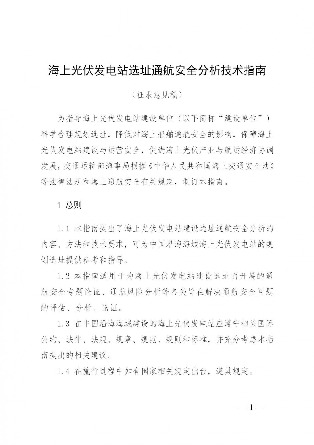 《海上光伏发电站选址通航安全分析技术指南(征求意见稿)》.wps