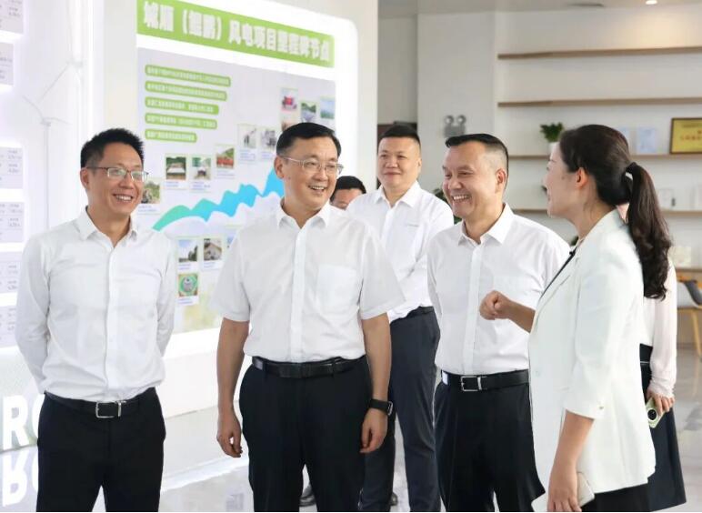 活动前,刘明洪陪同廖和明一行参观了广投桂中公司来宾城厢(鲲鹏)风电场升压站、展厅等地整体情况。来宾市市直有关单位,兴宾区、武宣县有关单位,项目主要参建单位及设备供应商代表,以及广投集团、广西能源集团有关领导及各部门和所属企业相关负责人参加本次活动。