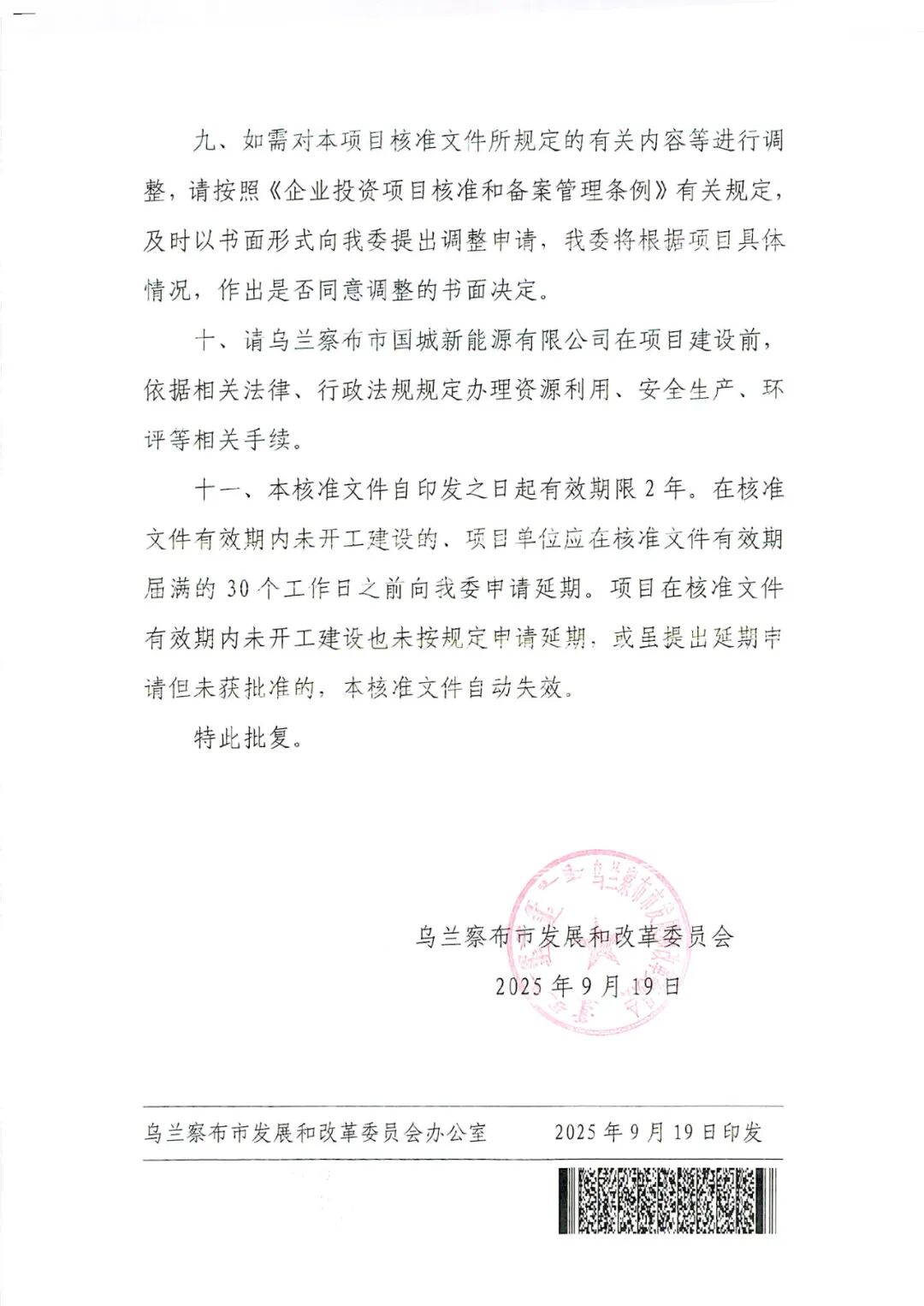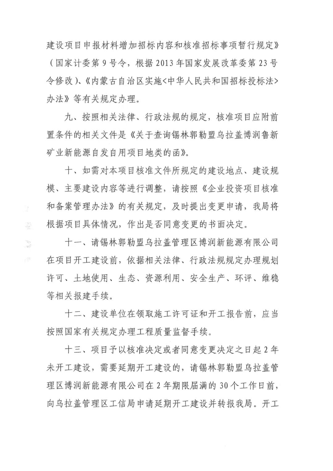 呼伦贝尔市新巴尔虎左旗巴彦查干49.5MW风电项目原批复的建设规模及主要建设内容:项目建设规模为49.5MW,风机机组要优先选用兆瓦级以上机组。变更后的建设规模及主要内容:项目建设规模为49.5MW,拟安装6.25兆瓦风电机组。项目原总投资43528.45万元,变更为21750万元。