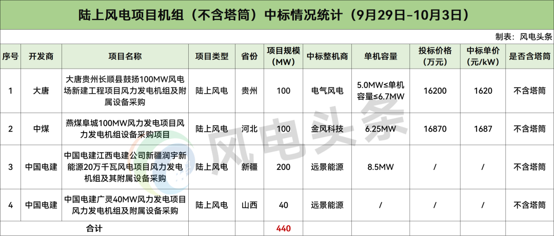 大唐开标100MW,由电气风电中标。
