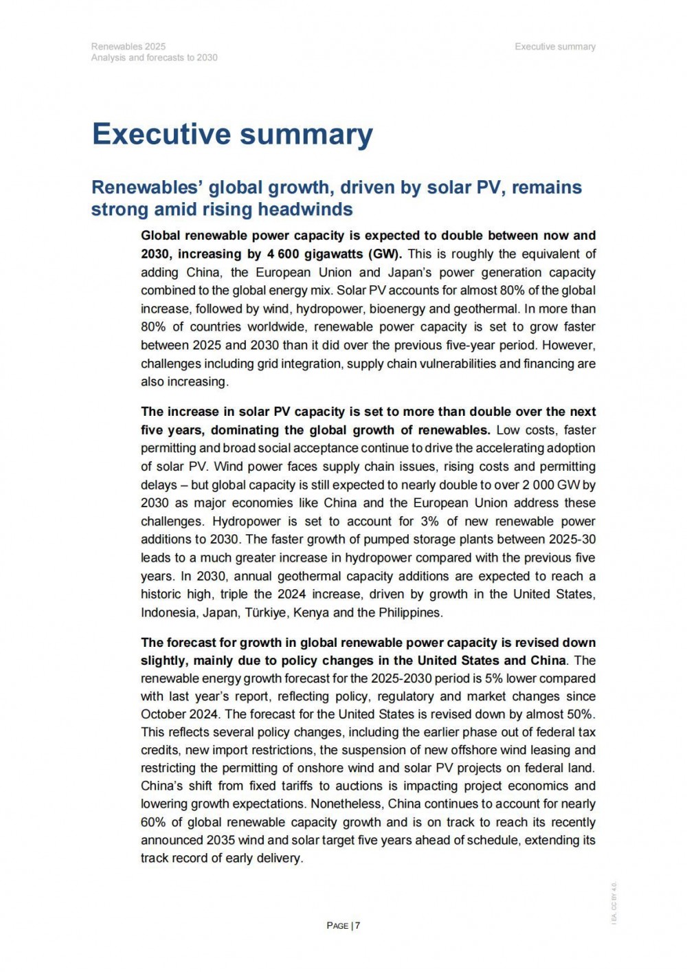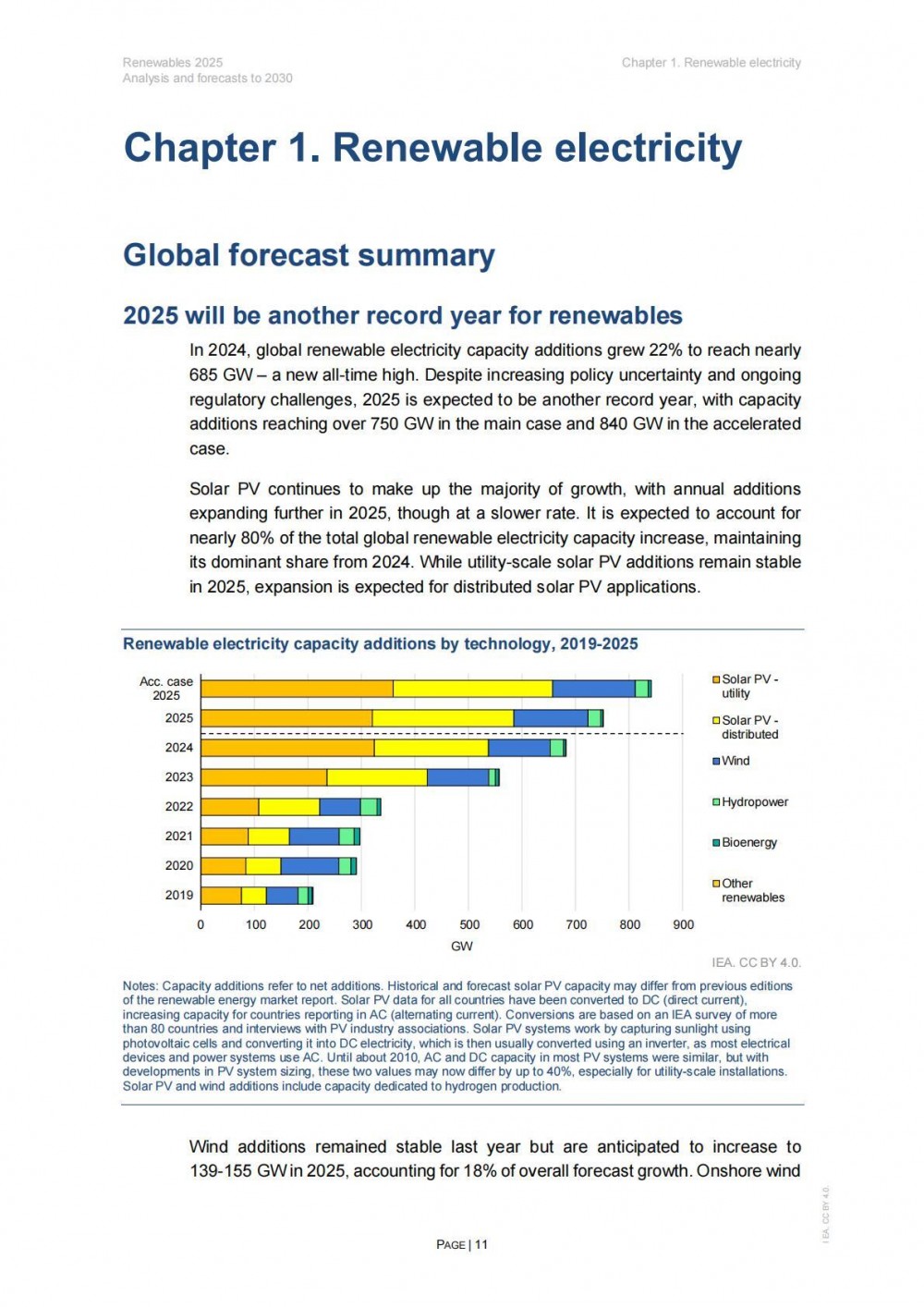 10 月 7 日消息,国际能源署《可再生能源 2025》报告预测,到 2030 年全球可再生能源发电能力将增 4600 吉瓦(约等于中、欧、日总发电能力),发电量较当前翻倍以上。