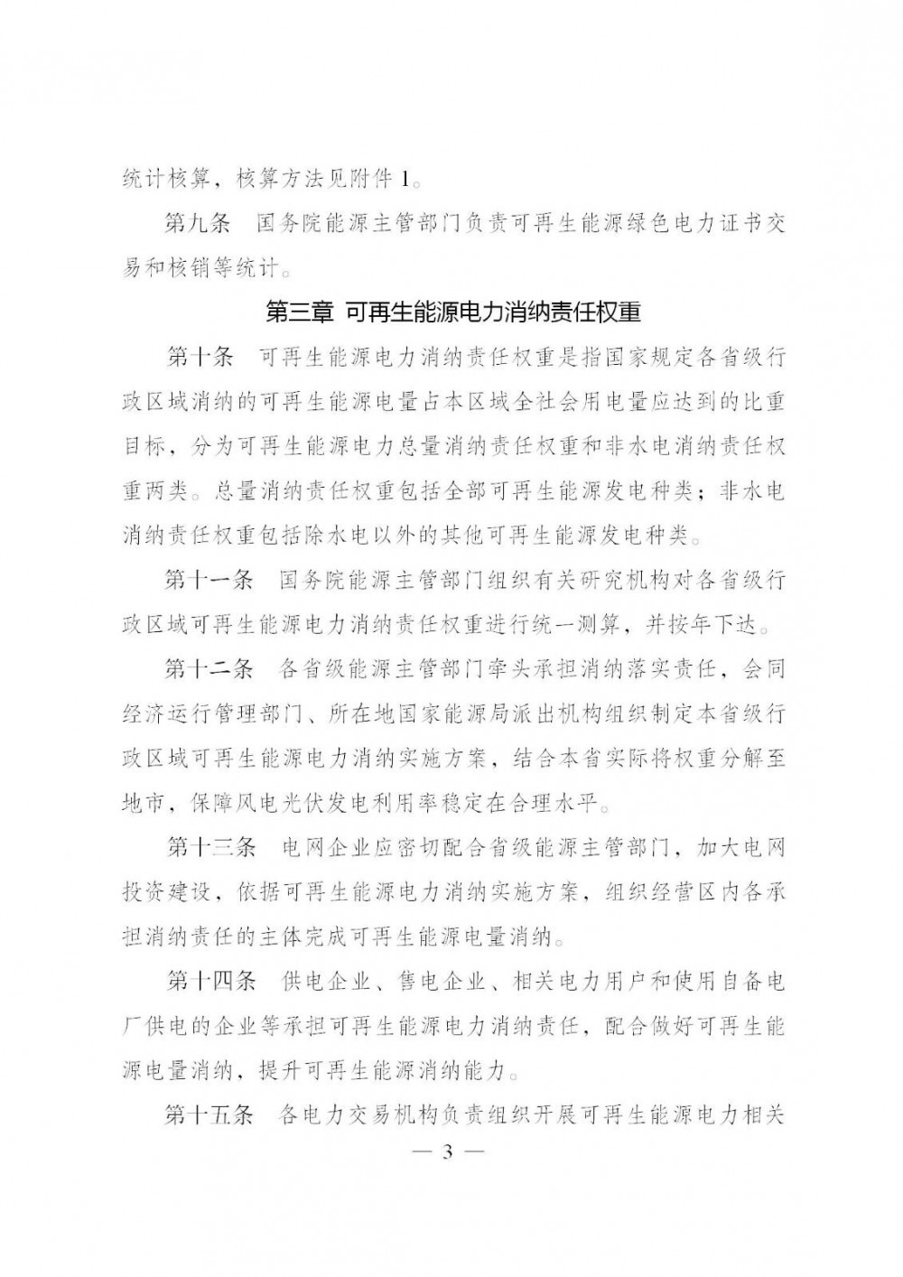 3、实施体系:国务院能源主管部门按年下达可再生能源电力消费最低比重目标和非电消费最低比重目标,由省级能源主管部门会同相关行业主管部门组织落实。