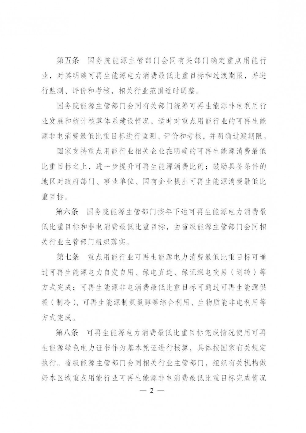 4、实施路径:重点用能行业可再生能源电力消费最低比重目标可通过可再生能源电力自发自用、绿电直连、绿证绿电交易(划转)等方式完成;可再生能源非电消费最低比重目标可通过可再生能源供暖(制冷)、可再生能源制氢氨醇等综合利用、生物质能非电利用等方式完成。