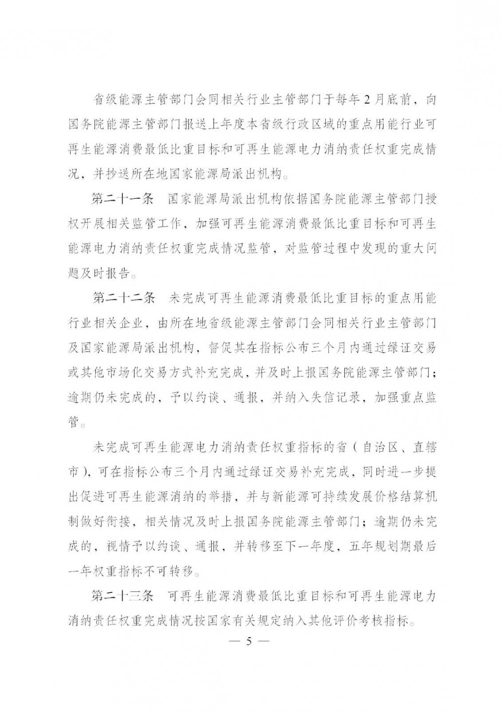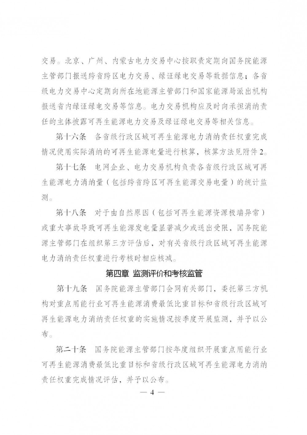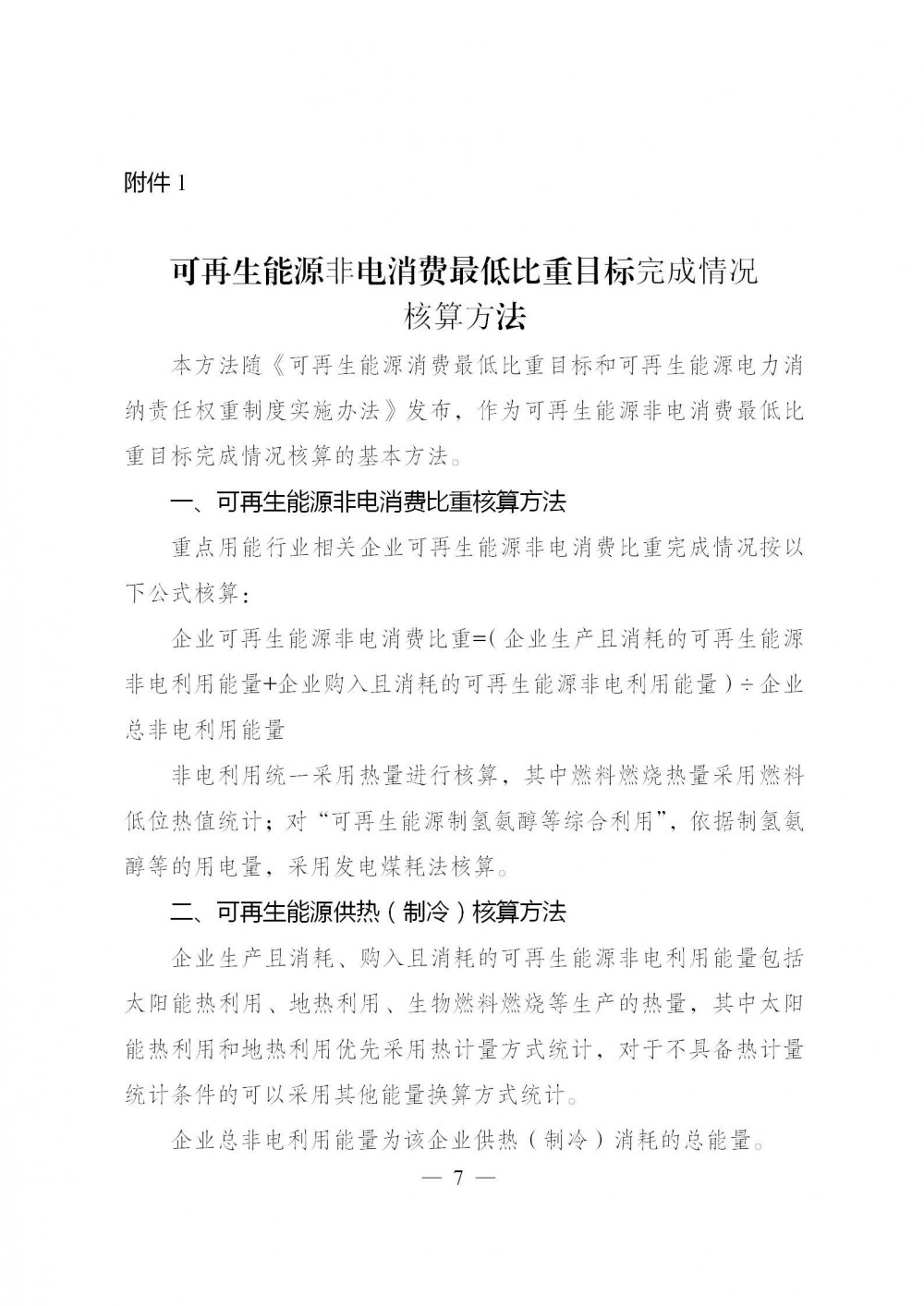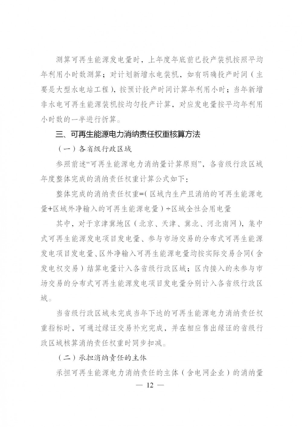 文件指出,本办法适用于能源用户可再生能源消费最低比重目标和省级行政区域可再生能源电力消纳责任权重的制定、监测和考核。