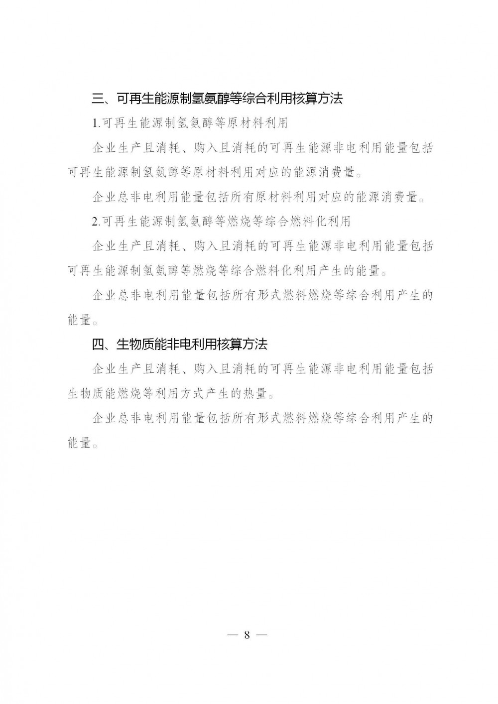 非电利用统一采用热量进行核算,其中燃料燃烧热量采用燃料低位热值统计;对“可再生能源制氢氨醇等综合利用”,依据制氢氨醇等的用电量,采用发电煤耗法核算。