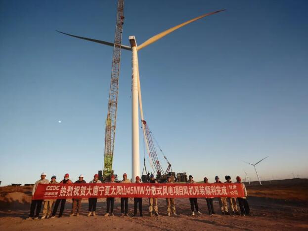 12月2日,甘肃公司承建的大唐宁夏太阳山45兆瓦分散式风电项目7台风机吊装工作全部顺利完成,为项目全容量并网发电奠定坚实基础。