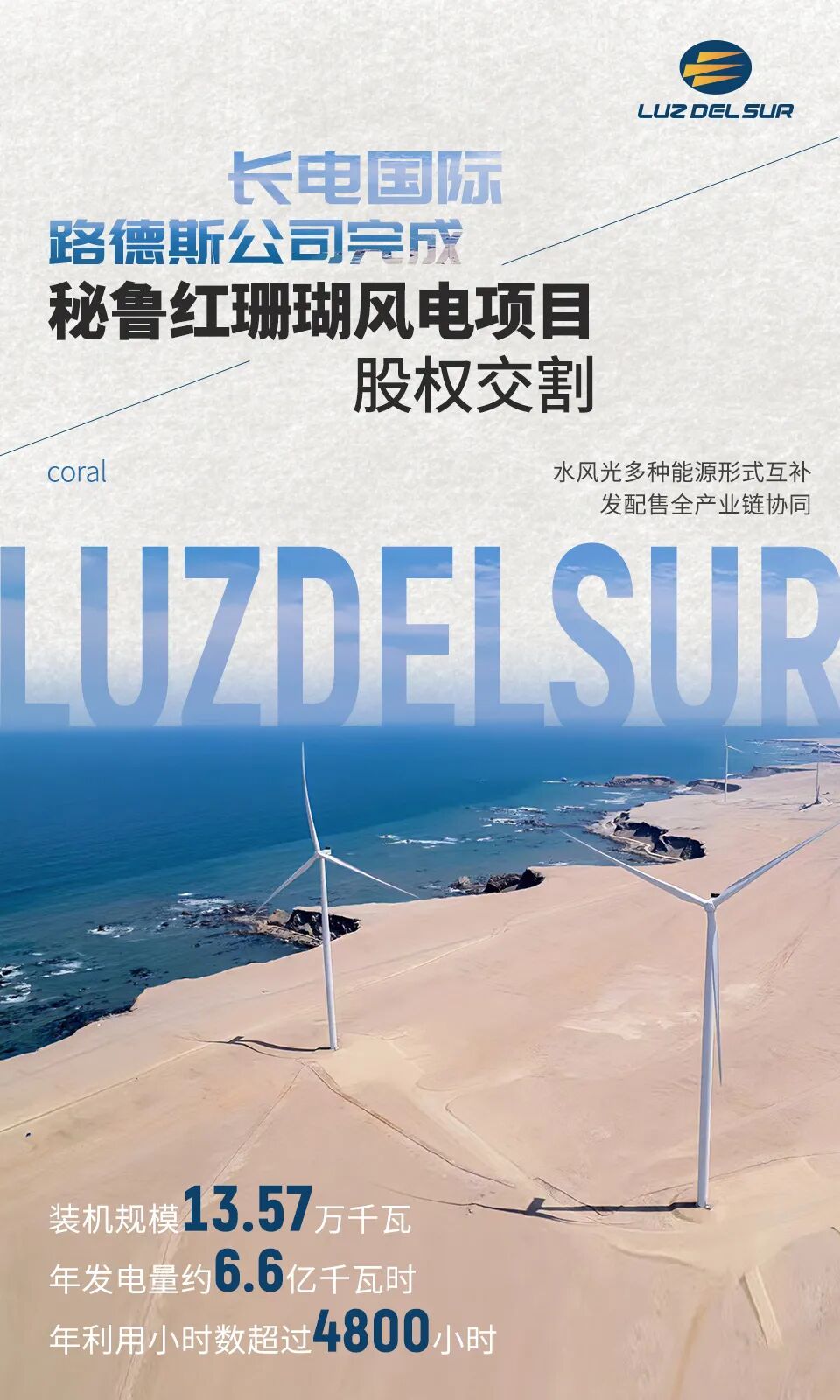 秘鲁时间2025年12月12日,长江电力所属秘鲁路德斯公司在秘鲁首都利马顺利完成红珊瑚风电项目股权交割。这是路德斯公司历史第三个新能源发电并购项目,该项目成功交割后路德斯公司已成为秘鲁第一大风电运营商,标志着路德斯公司在秘鲁构建“水风光多种能源形式互补、发配售全产业链协同”的发展目标取得重大进展,“十四五”期间长江电力海外投资业务圆满收官。