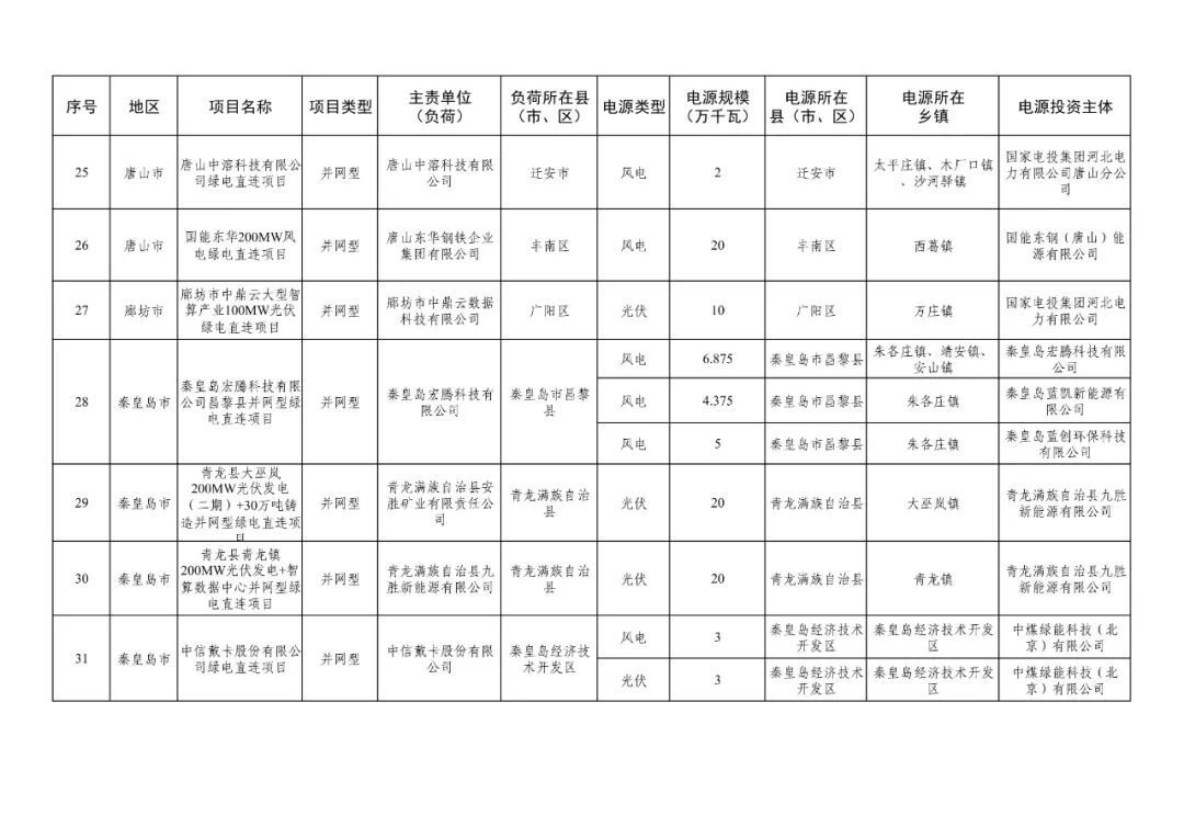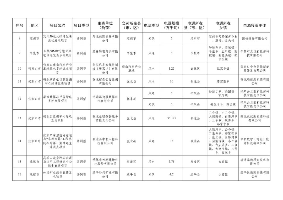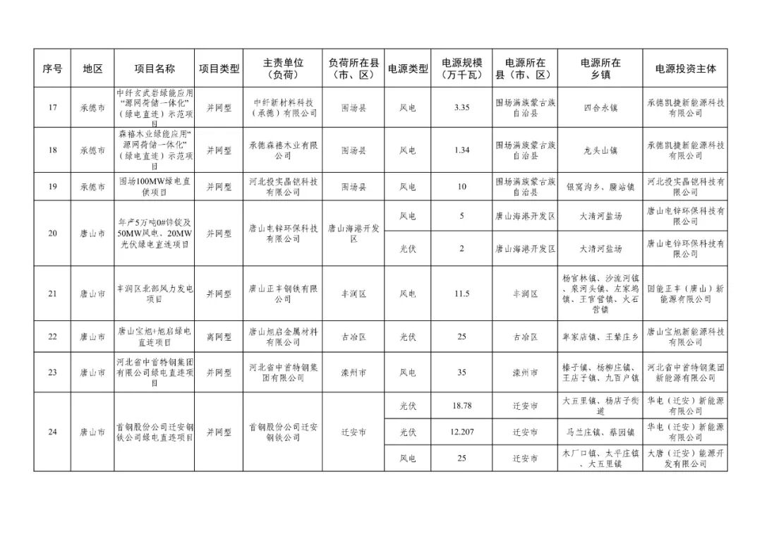 河北省2025年绿电直连拟安排第一批项目情况公示