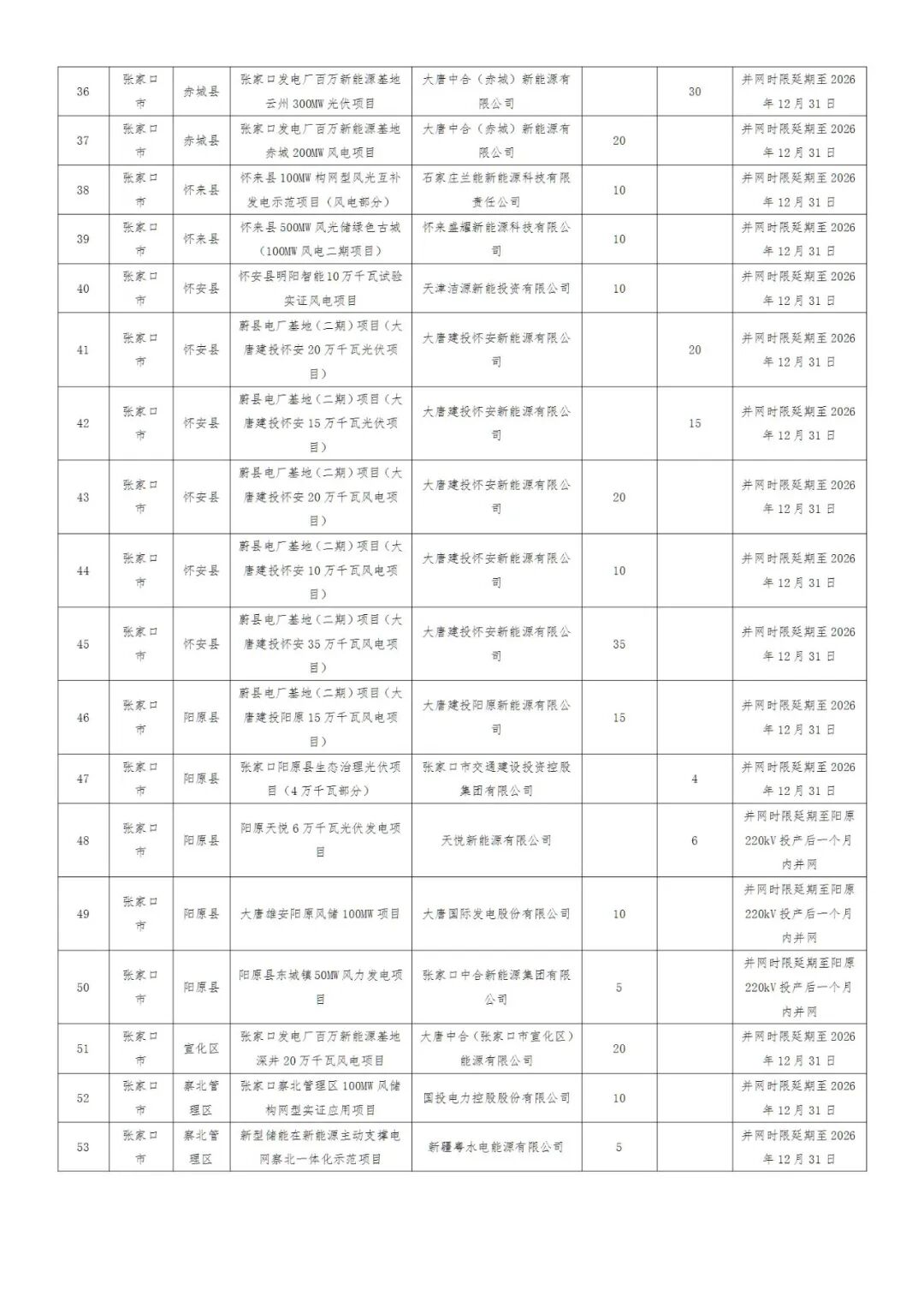 河北省2025年风电、光伏发电项目拟调整情况公示