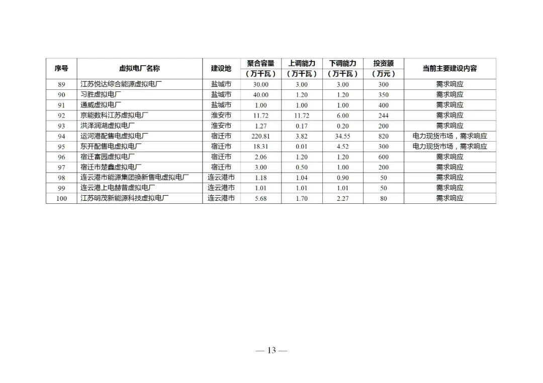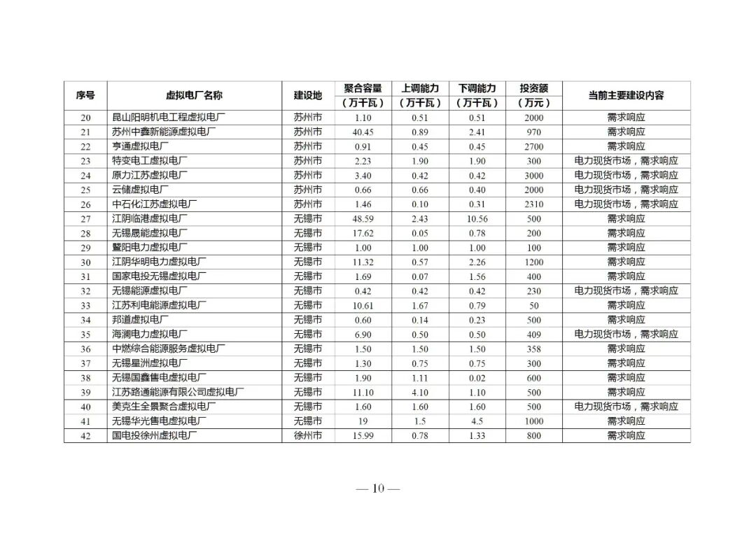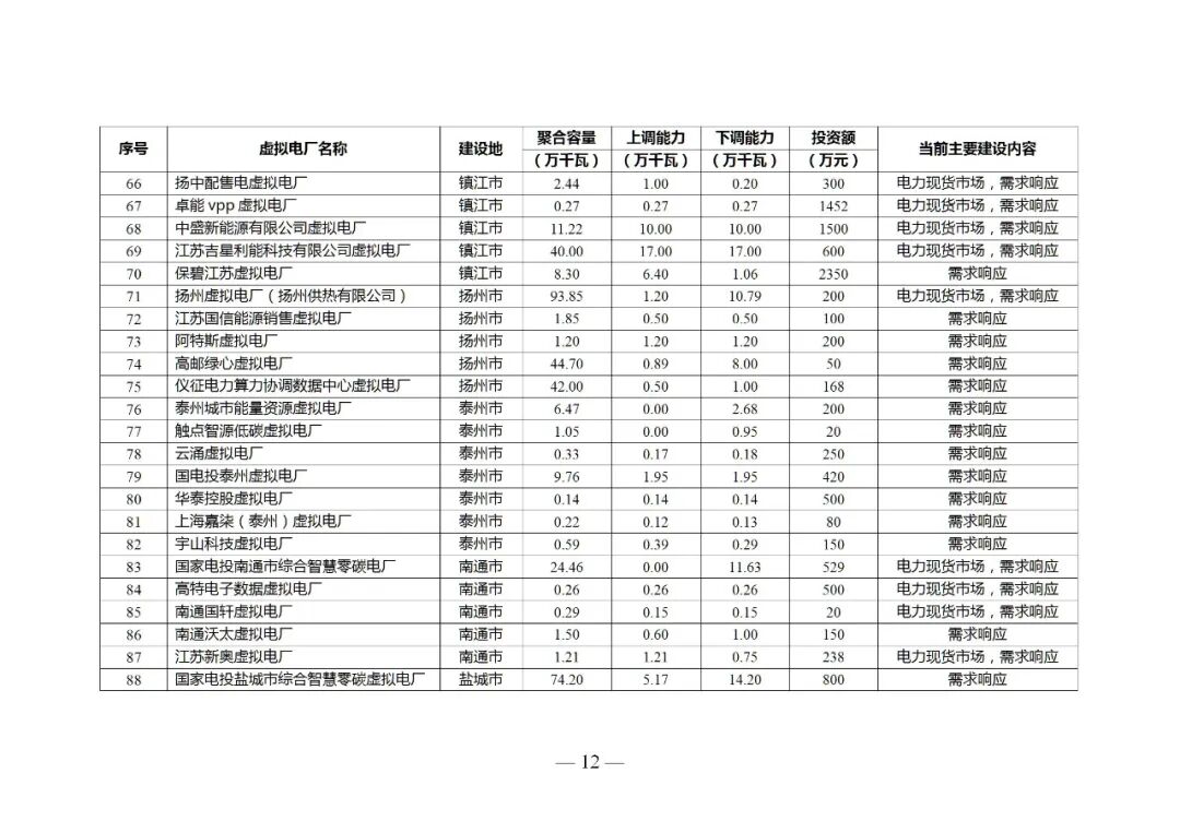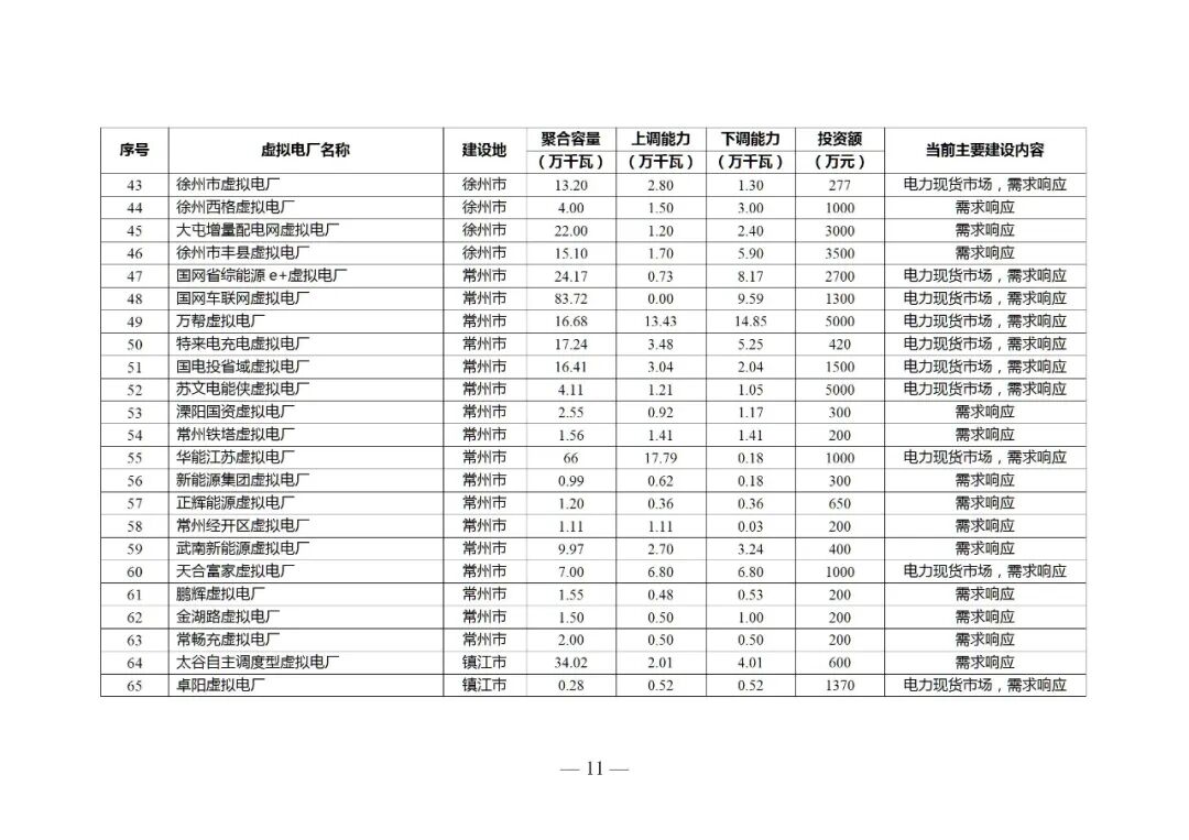 (四)鼓励参与电力市场。具备条件的虚拟电厂可参与电力中长期、现货、辅助服务等各类电力市场,鼓励虚拟电厂运营商聚合多时间尺度(秒级、分钟、小时、日前)与多空间范围(地区、电网分区、节点)的可调节资源,匹配聚合目标,实现资源分层、分区、分类聚合,提高参与电力市场的能力。围绕聚合分散电力资源、增强灵活调节能力、促进新能源消纳等不同场景,打造苏州市综合智慧零碳电厂、江宁开发区能碳虚拟电厂、万帮虚拟电厂等一批虚拟电厂项目。