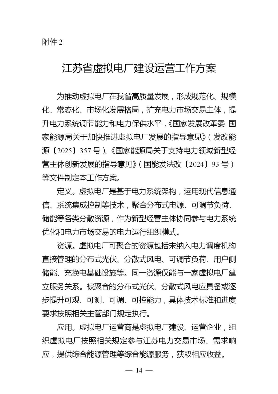 各设区市发展改革委,省电力公司、江苏电力交易中心、相关电力企业:根据《国家发展改革委 国家能源局关于加快推进虚拟电厂发展的指导意见》(发改能源〔2025〕357号)、《国家能源局关于支持电力领域新型经营主体创新发展的指导意见》(国能发法改〔2024〕93号)等文件要求,为促进我省虚拟电厂高质量发展,提升电力系统调节能力和保供水平,扩充新型主体参与电力交易模式,服务构建新型电力系统和高质量能源体系,现就有关事项通知如下。