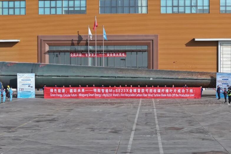 1月4日,明阳智能自主研发的MySE23X全球首款可回收碳纤维叶片成功下线。这一技术里程碑,不仅将风电叶片的全生命周期可持续管理推向新高度,也凸显了明阳凭借创新材料科技引领行业绿色循环变革的坚定决心,为其开拓海外市场提供强有力的技术支撑与“绿色通行证”。